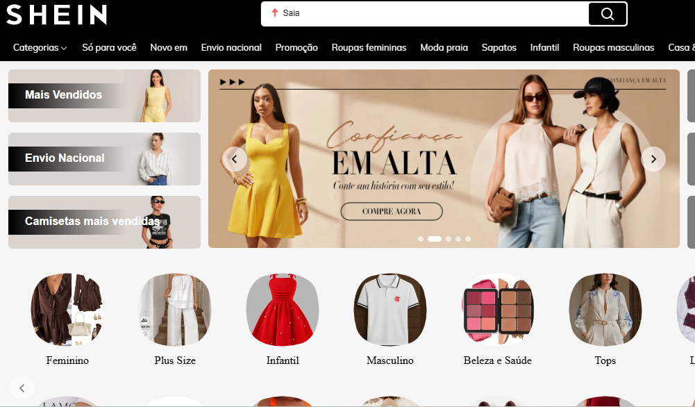 Outro fator determinante é a variedade. A SHEIN funciona como uma grande vitrine global em constante movimento. Todos os dias, centenas de novos produtos são adicionados ao catálogo. Essa velocidade cria um ciclo de curiosidade e desejo: o consumidor entra no app hoje, e sabe que amanhã encontrará algo totalmente novo. Essa dinâmica alimenta a sensação de pertencimento às tendências, algo bastante valorizado por quem acompanha redes sociais e busca inspiração em influenciadores.